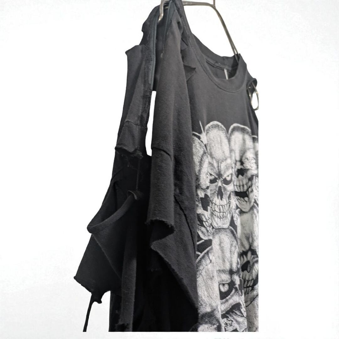 "一点物"としても人気の高いリメイクアイテム。その中でも他では味わえないようなボディが持ち合わせる攻撃的なプリントデザインに唯一無二なこのボロディテールが相まった一枚に仕上がっております。
